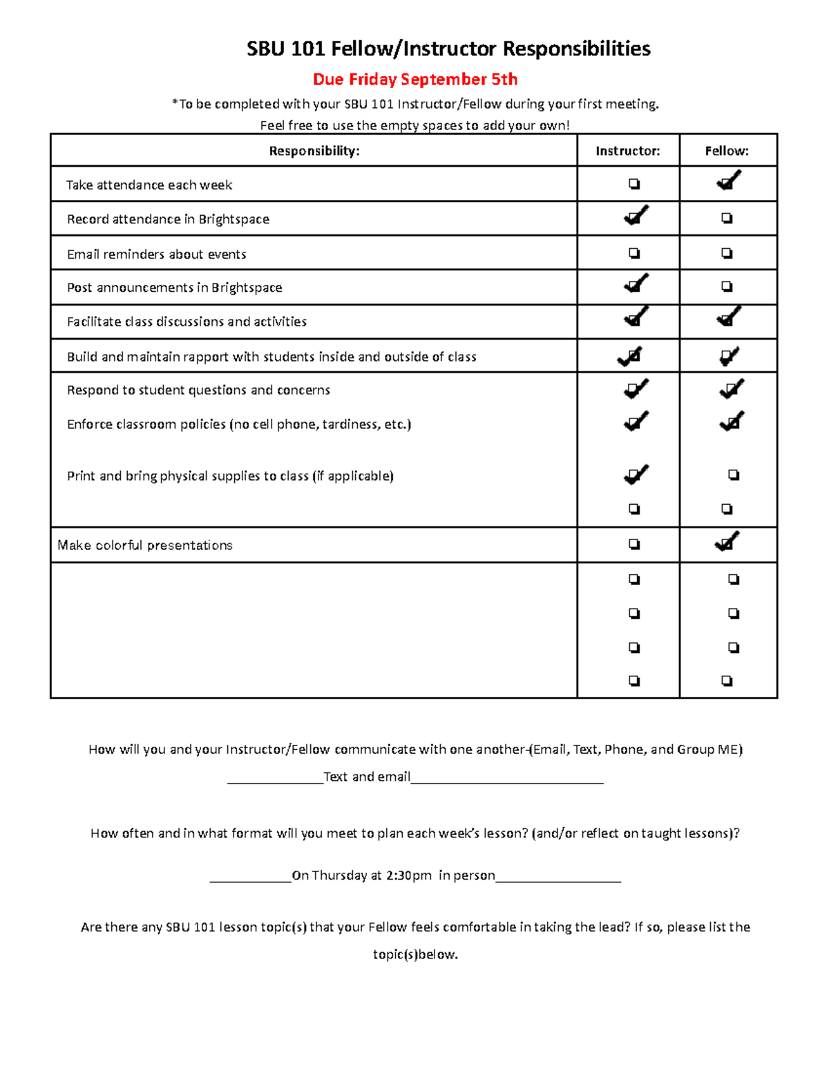 SBU 101 Fall 2024 Fellow Instructor Responsibilities Checklist - Studocu