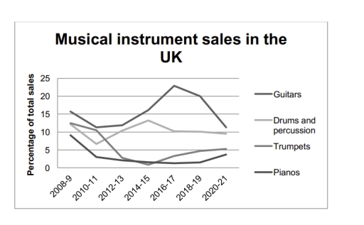 Band 4: The graph shows changes in the sales of musical instruments in ...