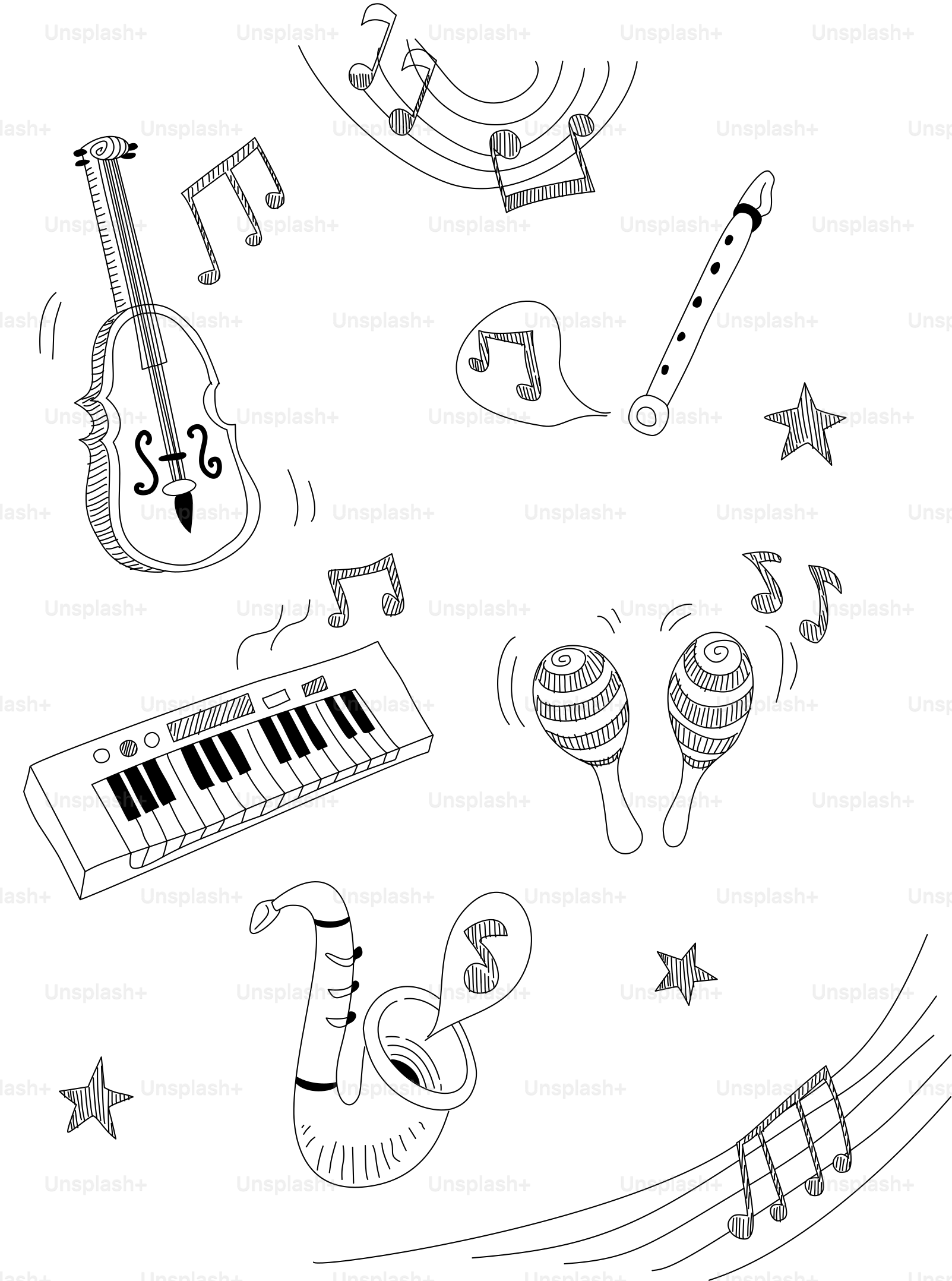 A drawing of a music notes and a musical instrument | Premium AI ...