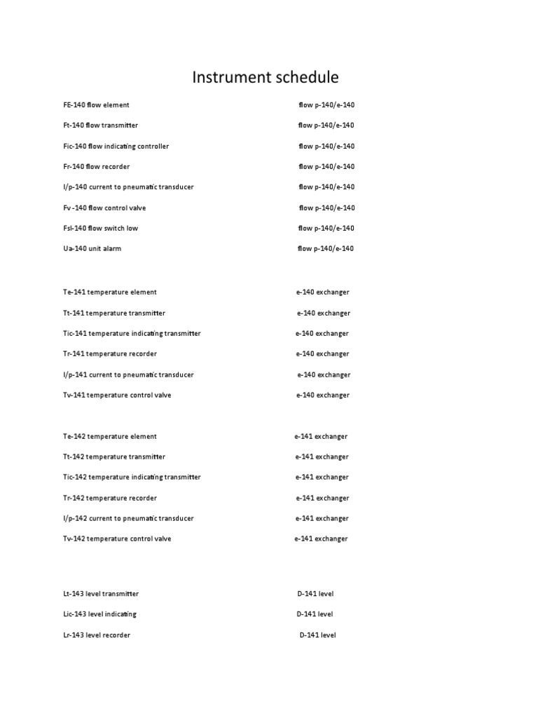 Instrument Schedule | PDF | Valve | Chemical Engineering