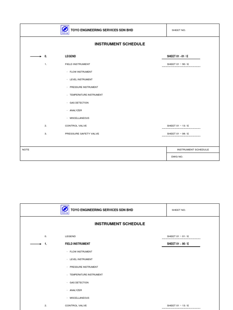 Instrument Schedule: Toyo Engineering Services SDN BHD | PDF