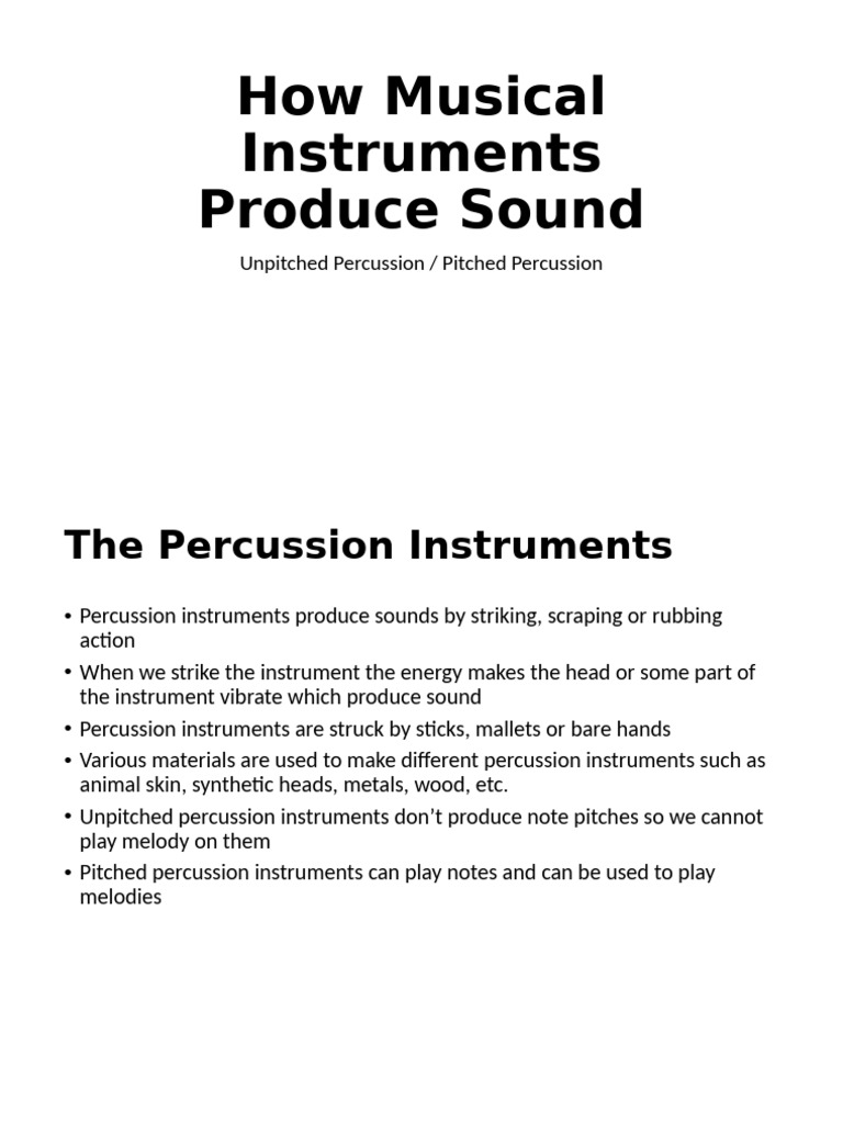 Percussion Instruments (Years 1-2) | CGP Plus - Worksheets Library