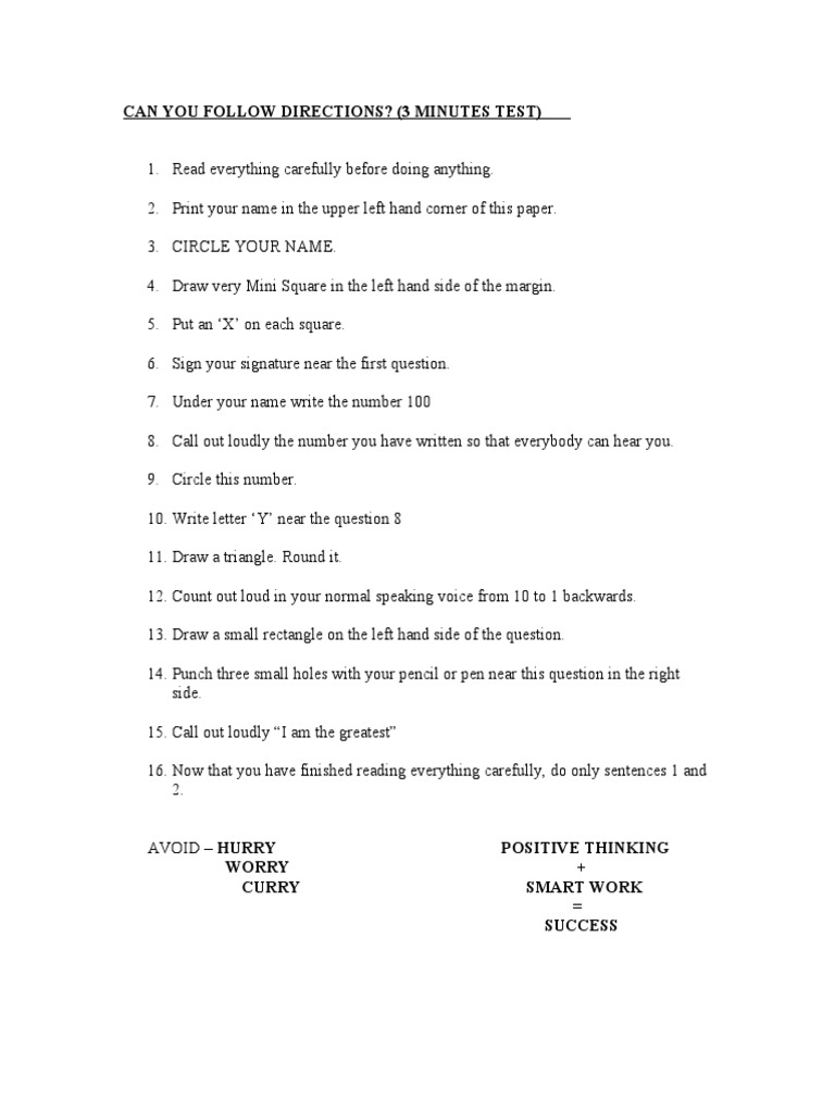 Can You Follow Instructions?: A Read and Do Test | PDF