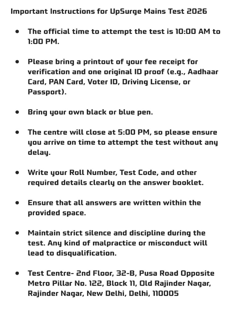Important Instructions Mains Test 2026 | PDF