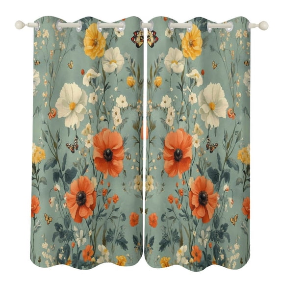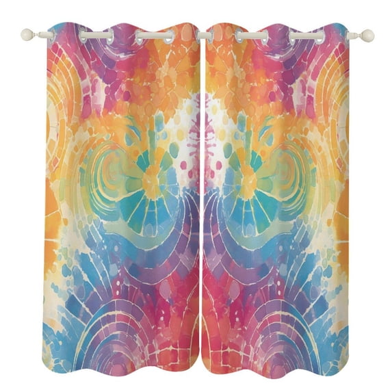 52×72in Perforated Curtain Two Symmetrical Pieces Heat Insulation Sun ...
