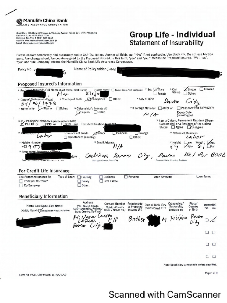 EVIDENCE OF INSURABILITY: Evidence for life insurance - GMU Consults