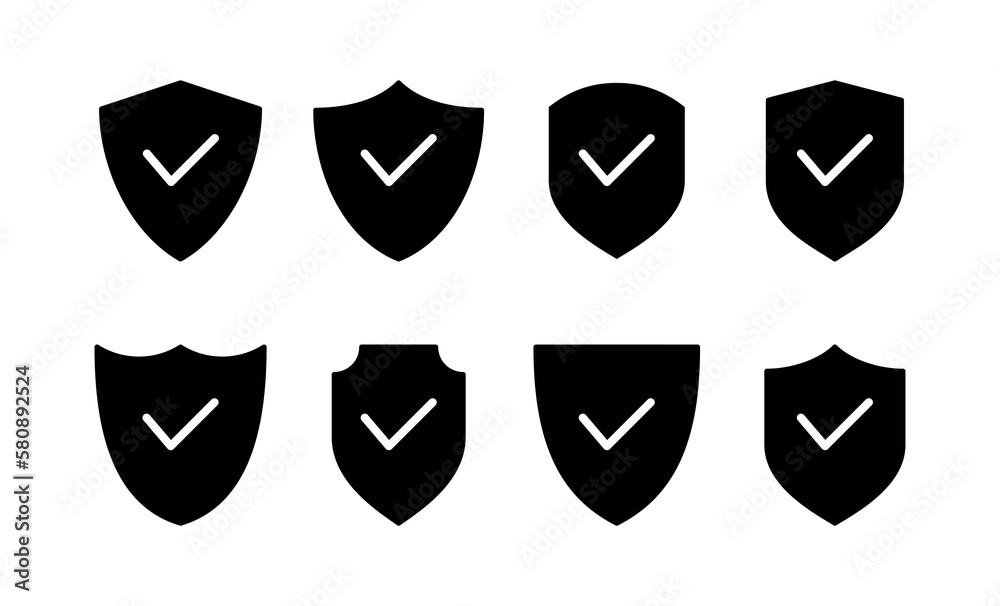 Check mark shield approved secure protection insurance identity icon ...
