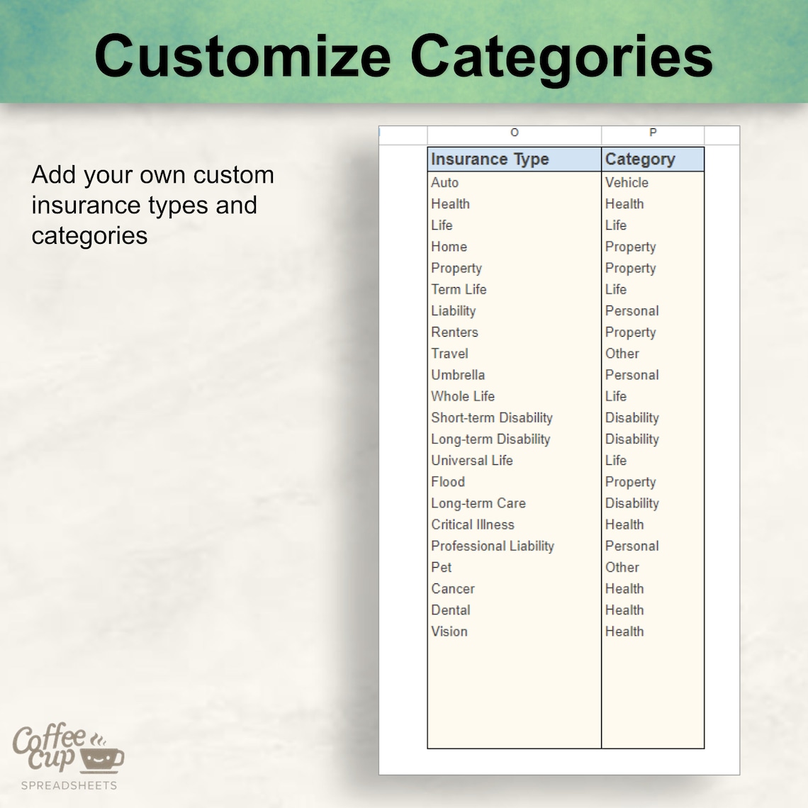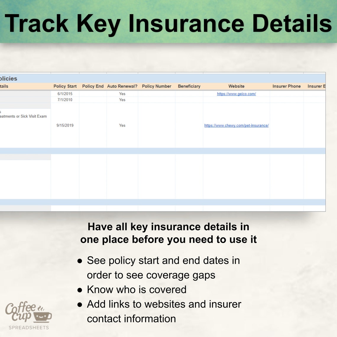 Insurance Policy and Coverage Tracker Excel and Google Sheet - Etsy