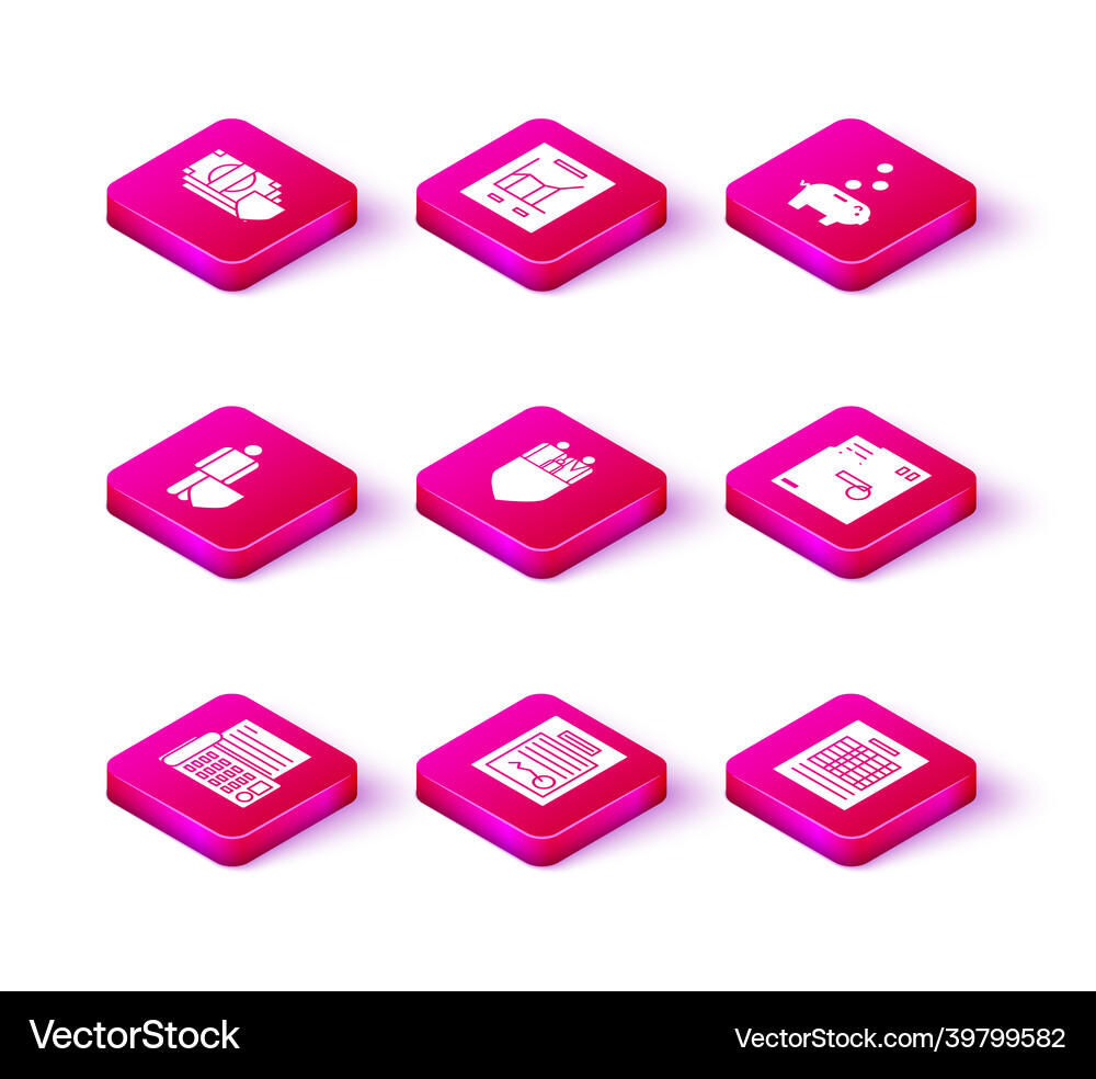 Set traveling baggage insurance fax machine Vector Image