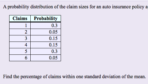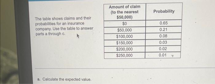 Solved: The table shows claims and their probabilities for an insurance ...