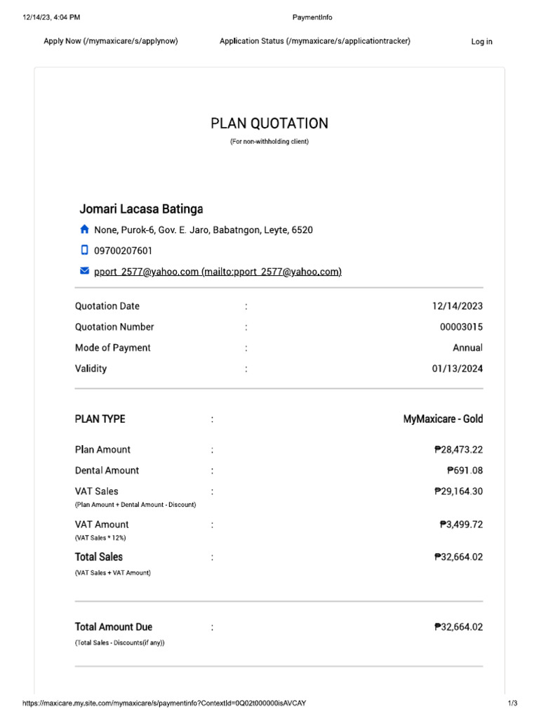 Maxicare Insurance Quotation | PDF