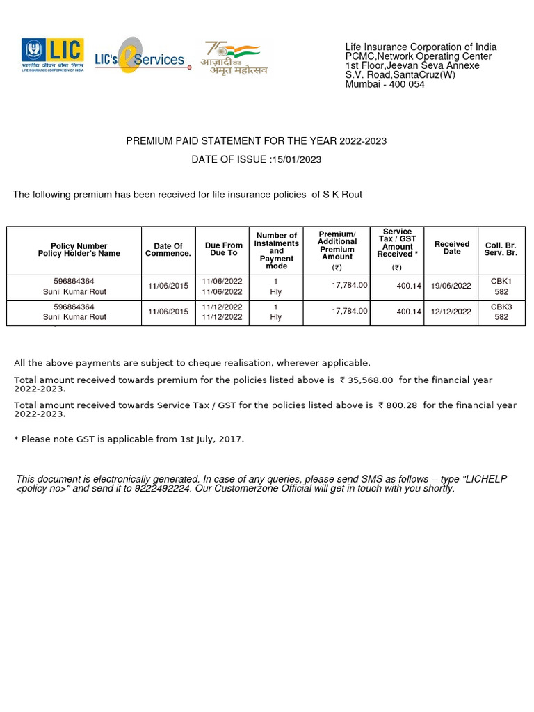 LIC Premium Statement 2022-23 | PDF | Insurance | Life Insurance