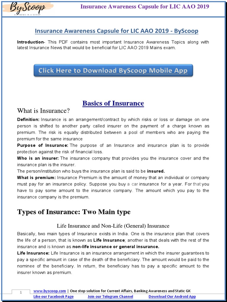 Insurance Awareness PDF LIC AAO 2019 - ByScoop | PDF | Insurance ...