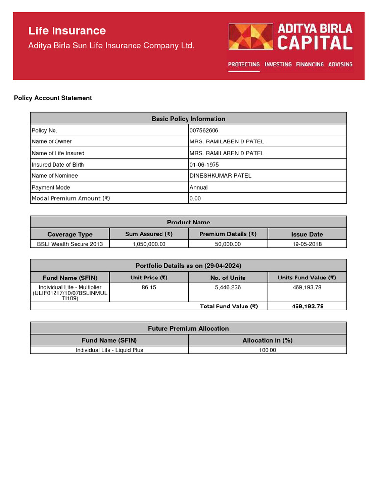 Account Statement 1707855586 | PDF | Insurance | Life Insurance
