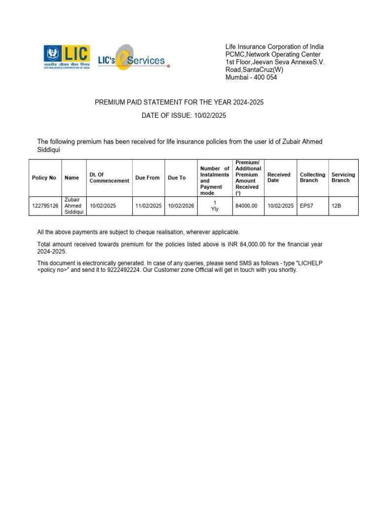 LIC Premium Paid Statement 2019-20 | PDF | Insurance | Life Insurance