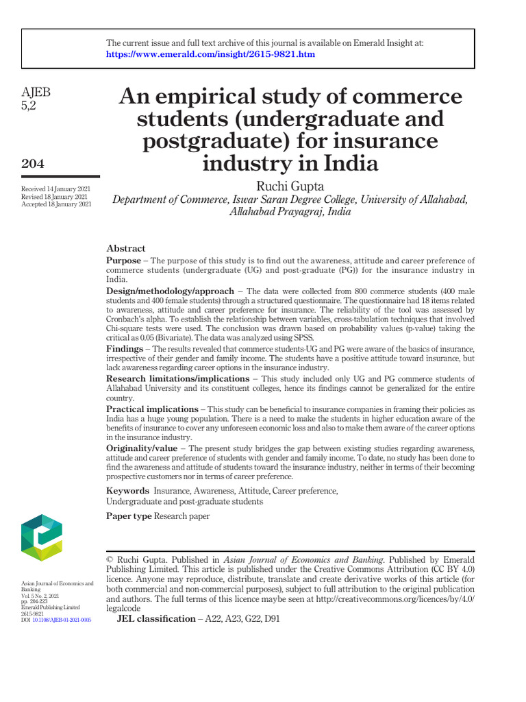 Emerging Trends in Insurance A Study in | PDF | Insurance | Life Insurance