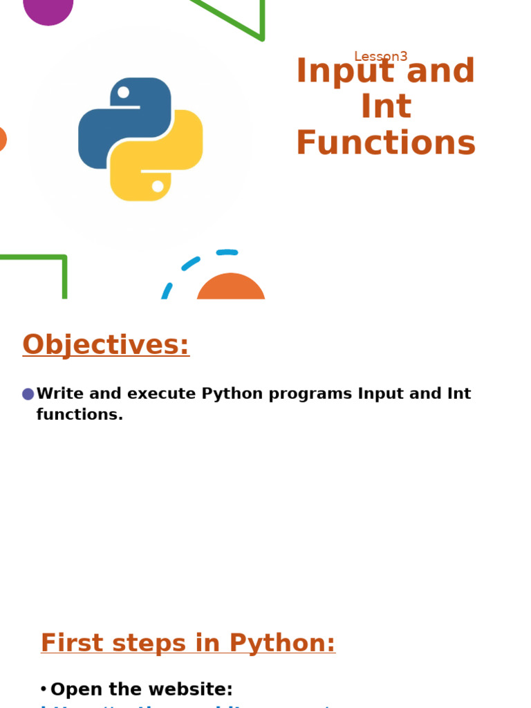 Science and Engineering: Python[2 day]: input( ), int( ), float ...