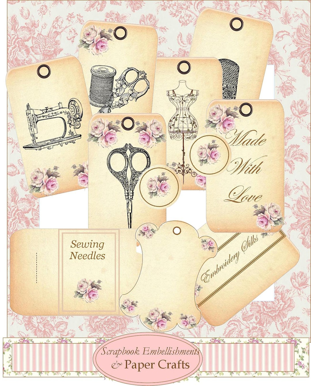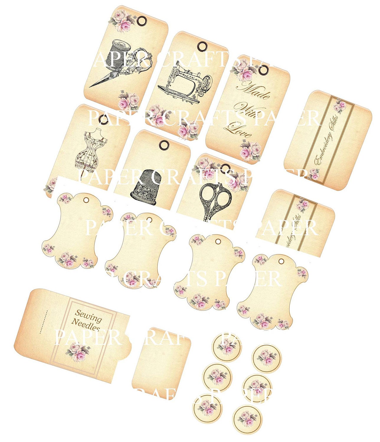 Papercraft Vintage Sewing Labels Tags Needle Thread Winders Instant ...