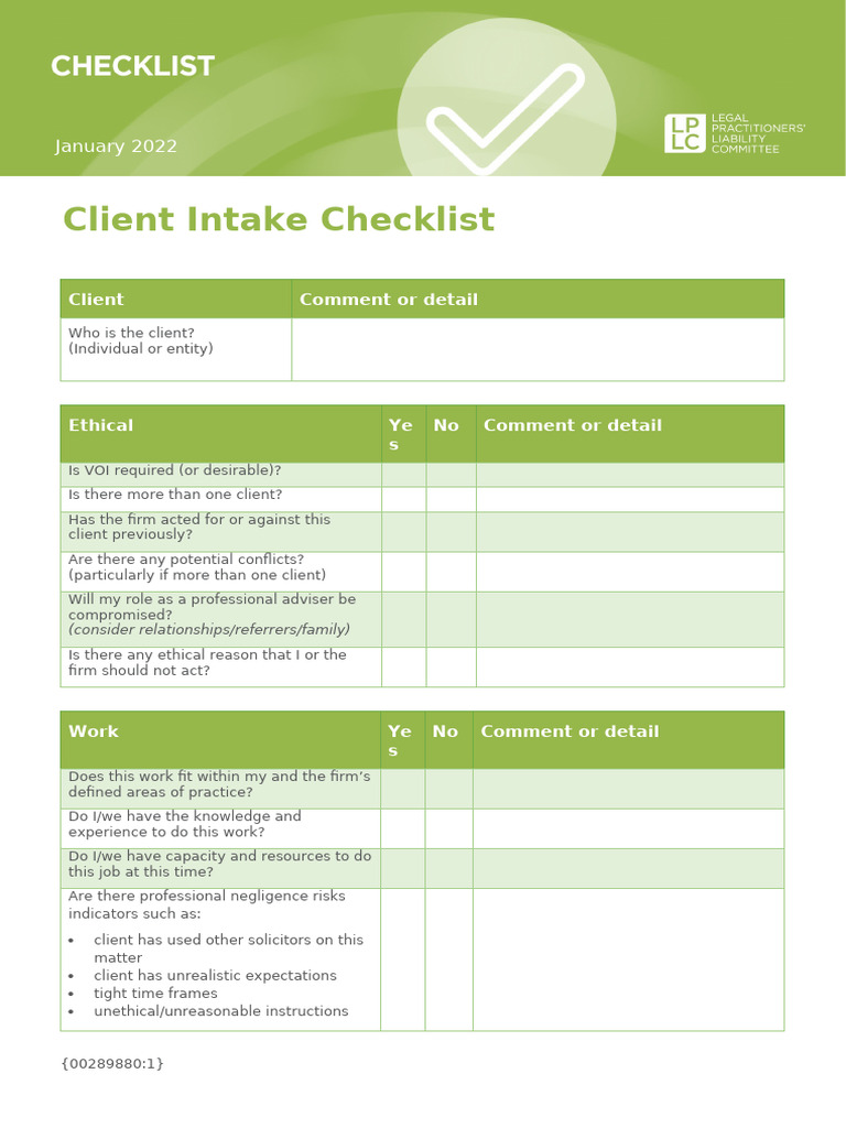 Personal Injury Client Intake Template & Checklist Law Firm Client ...