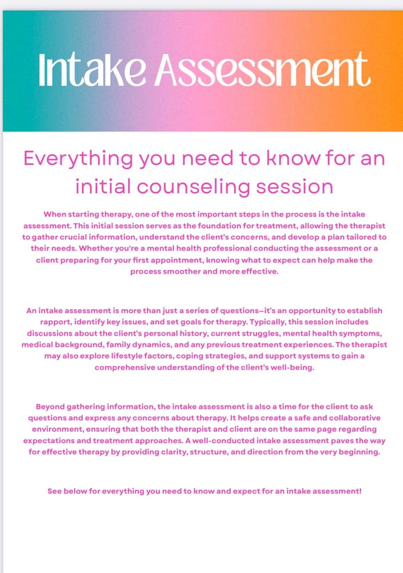 Therapist Intake Session Template | Digital Counseling Intake Form PDF ...