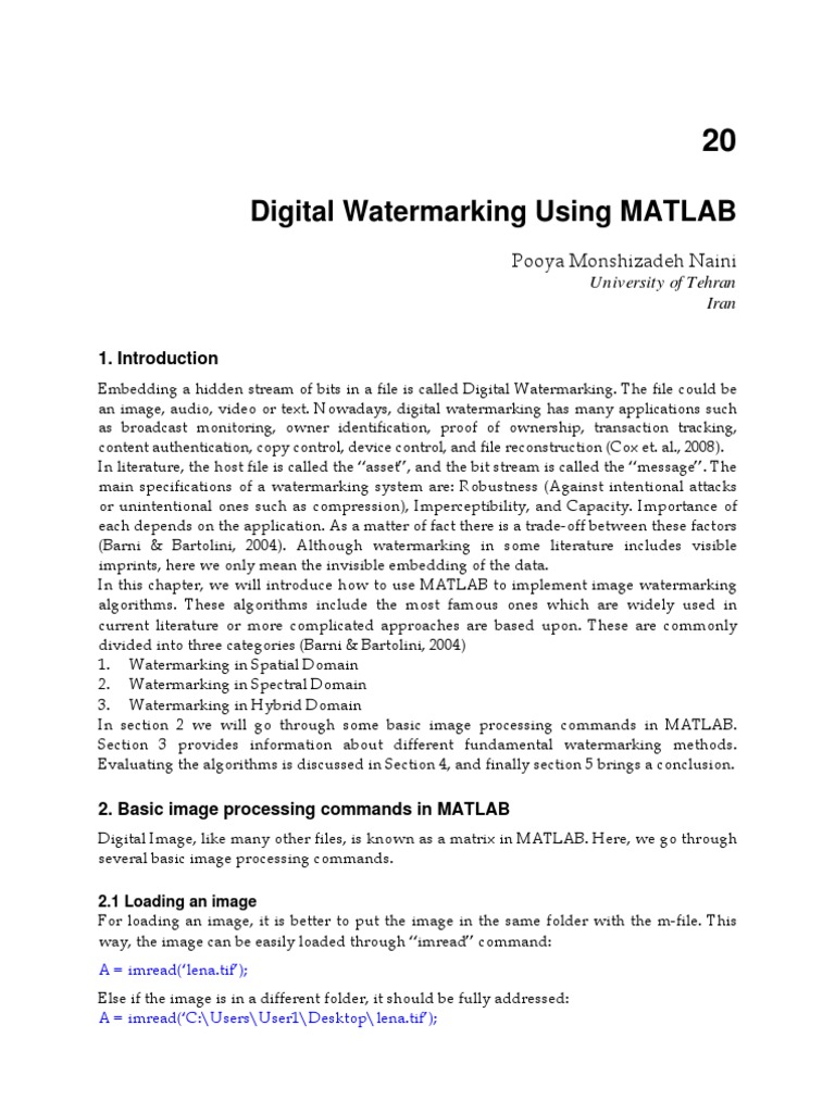InTech-Digital Watermarking Using Matlab | PDF