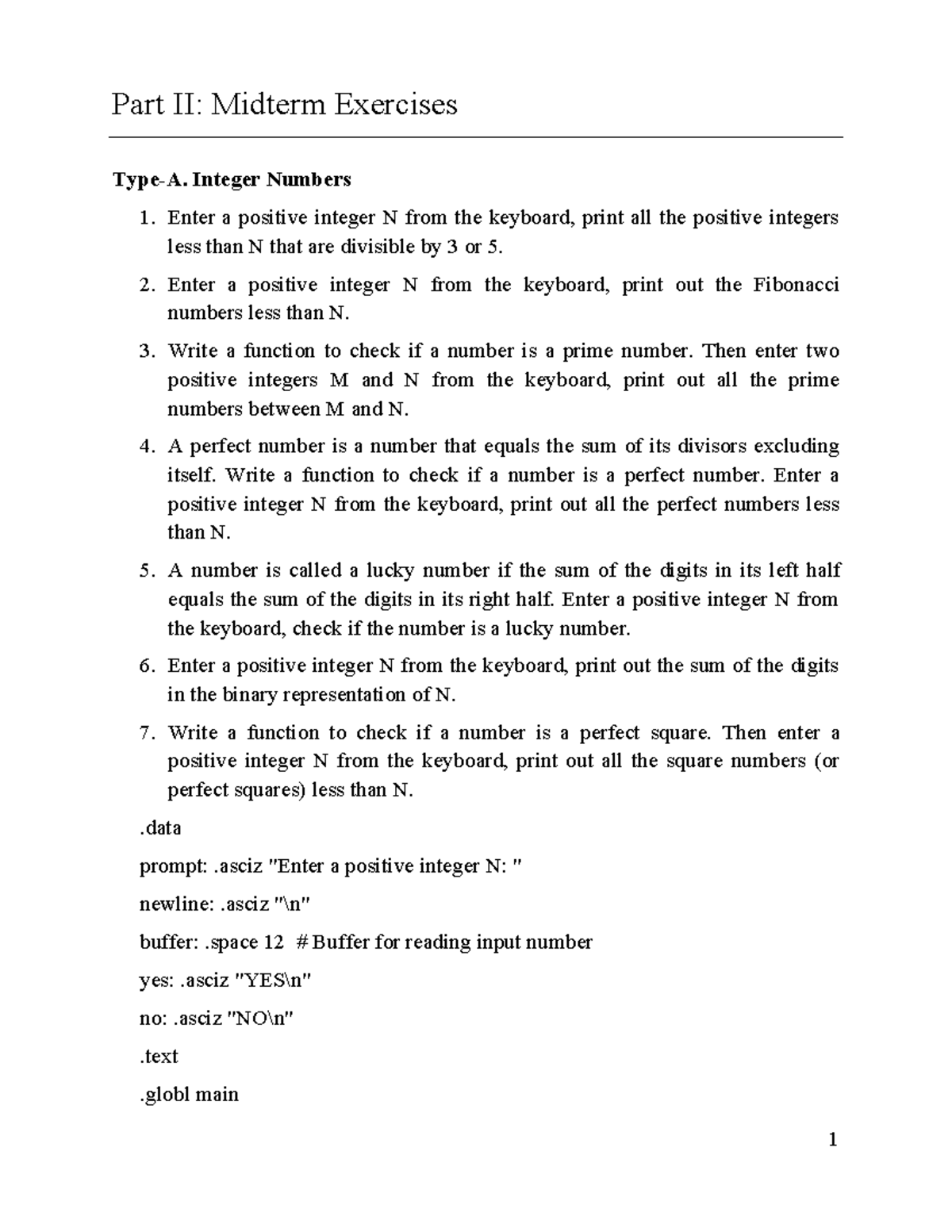 Part II: Midterm Exercises for 20241 ICT on Integer Numbers - Studocu