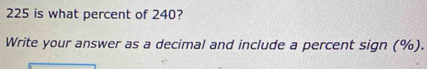 Solved: 225 is what percent of 240? Write your answer as a decimal and ...