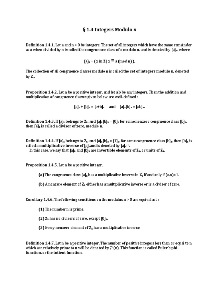 Integers Modulo n Explained | PDF