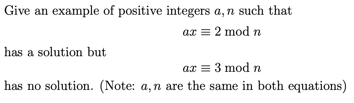 Solved Give an example of positive integers a,n such that | Chegg.com