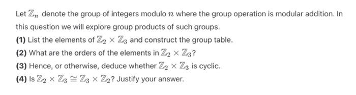 Solved Let Zn denote the group of integers modulo n where | Chegg.com