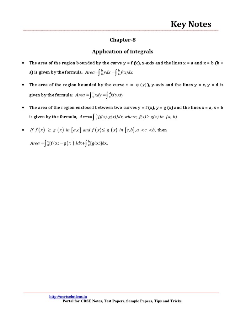 12 maths key notes ch 08 application of integrals - Key Notes Chapter ...