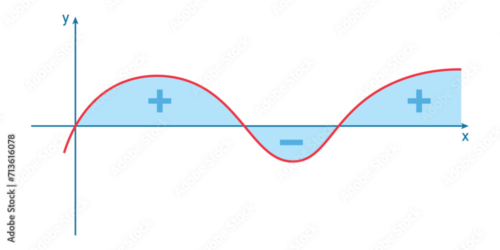 Integral calculus in mathematics. Integral a function graph. Curve with ...