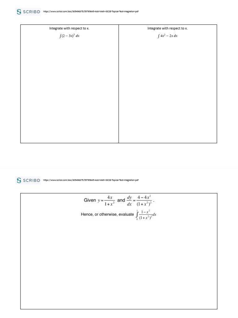 Integration Worksheets - 100 Questions and Answers - Maths Academy