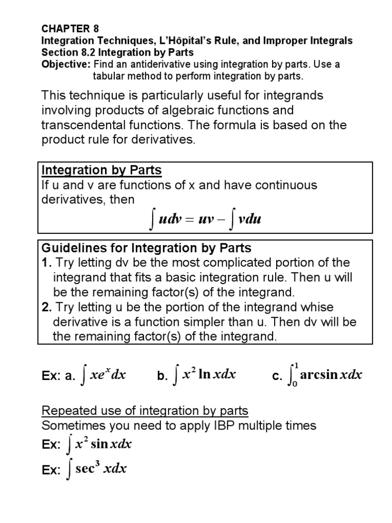 PPT - 8.2 Integration By Parts PowerPoint Presentation, free download ...