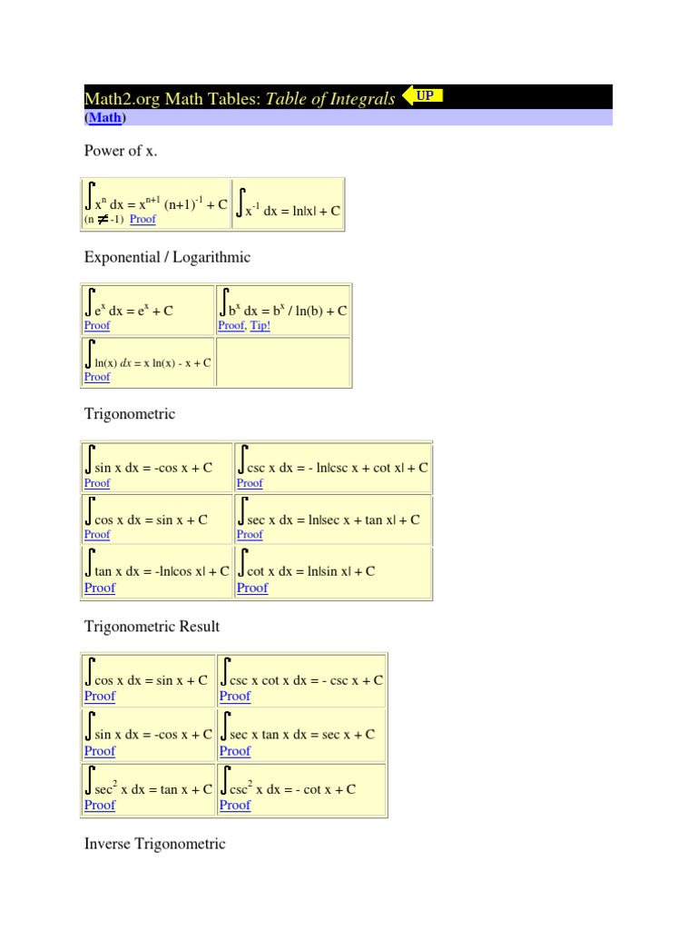 Table Of Useful Integrals | Integral Calculator – IQFDW