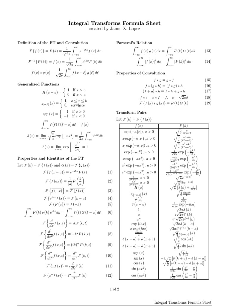 Integral Transforms Formula Sheet
