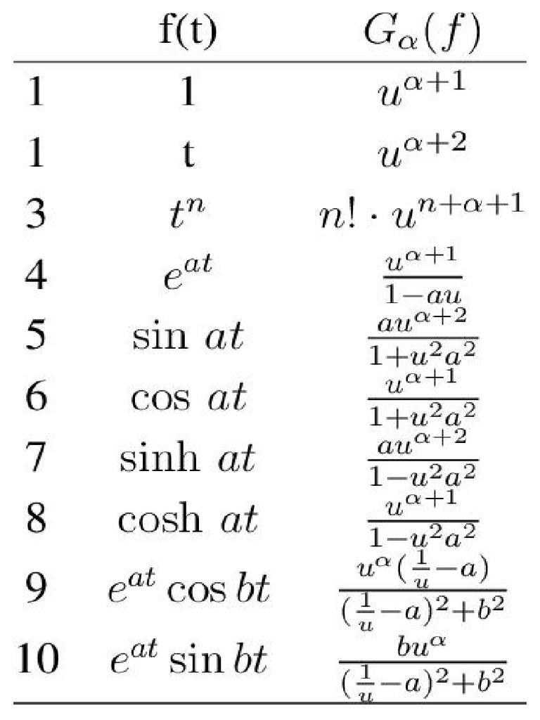 Table of Laplace Typed Integral Transform G A 4 | PDF