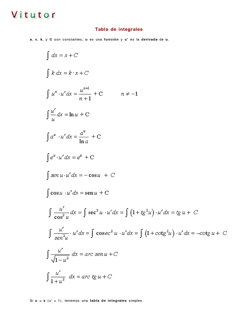 Tabla de integrales de funciones conocidas con ejemplos de funciones ...