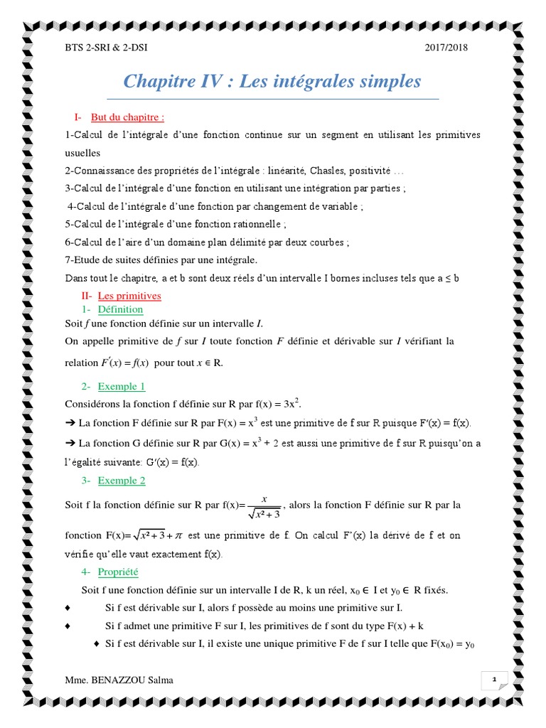 Intégrales simples : cours complet | PDF | Intégral | Fonction ...