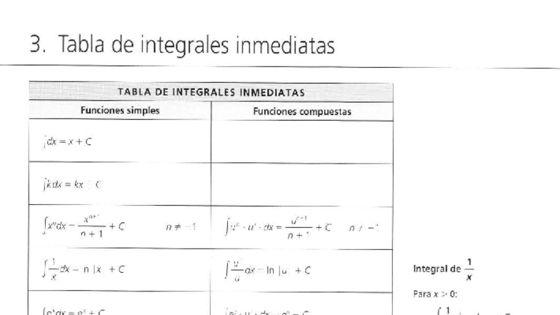 Tabla de integrales inmediatas - Integrales inmediatas tipo forma ...