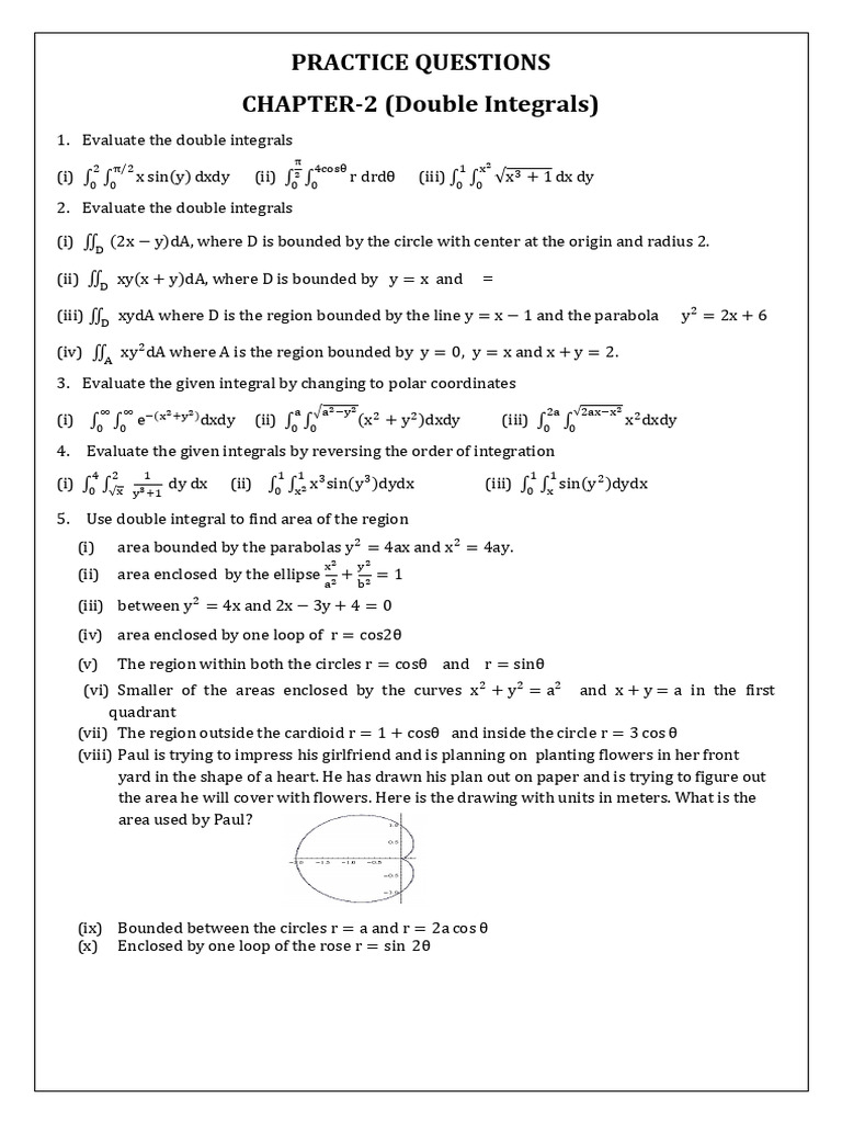 Practice Questions Chapter 2 Double Integrals 2023-24 | PDF
