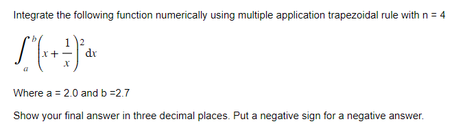 Solved Integrate the following function numerically using a | Chegg.com