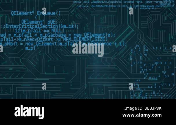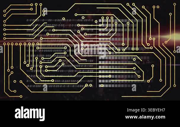 Animation of integrated circuit and 6g over servers. Data processing ...