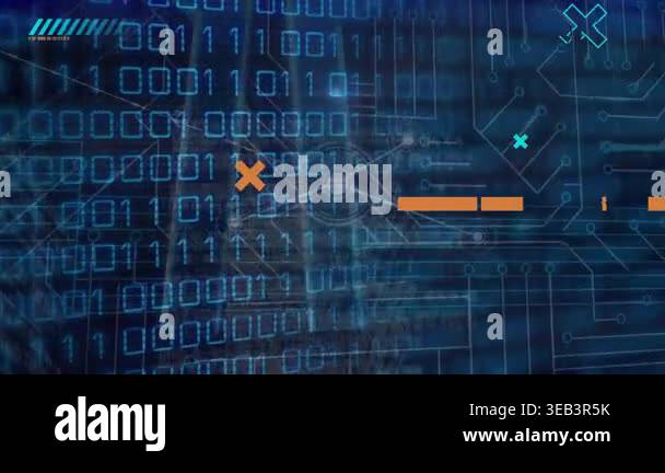 Animation of diverse data, great britain flag, integrated circuit and ...