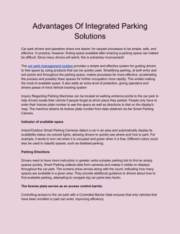 Advantages Of Integrated Parking Solutions