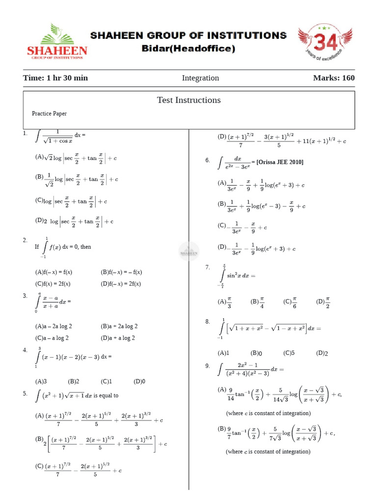 Integration Practice Paper Questions | PDF | Mathematical Analysis ...