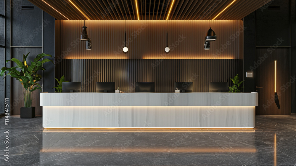 Modern office reception desk. Contemporary reception desk with sleek ...