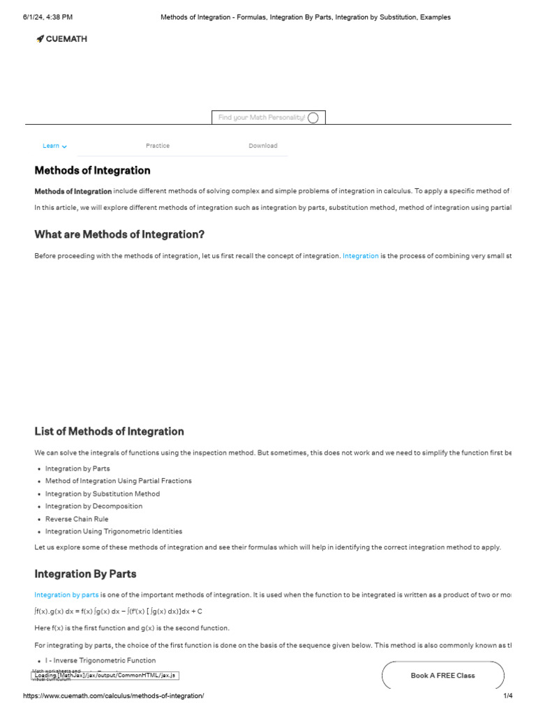 Essential Methods of Integration: Parts, Trigonometric & Rational ...