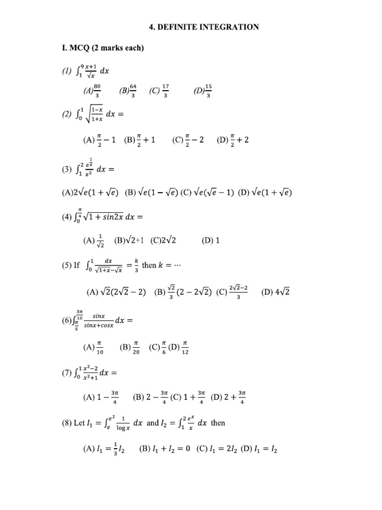 Multiple Choice Questions (Integration) | PDF | Integral | Square Root