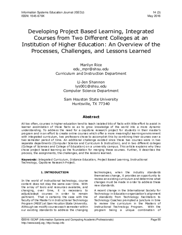 (PDF) Developing Project Based Learning, Integrated Courses from Two ...